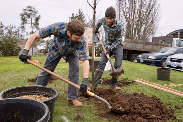 In 2015, sick trees were removed, chipped, and tree mulch was reused on-­‐site during an employee volunteer tree planting.
